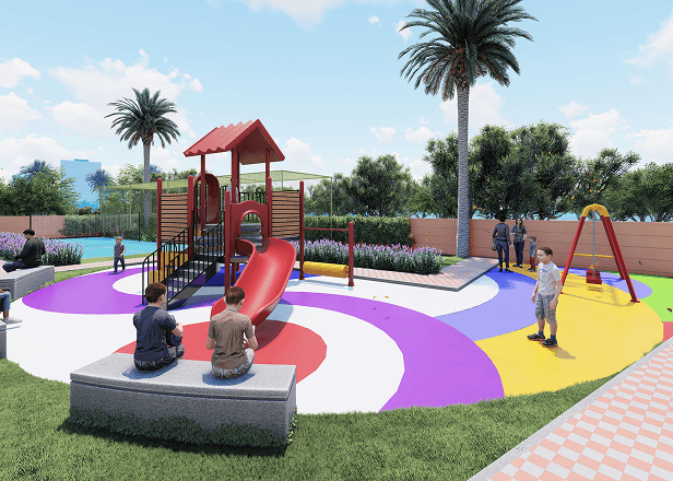 The project focuses on sustainable living with features such as rainwater harvesting, sewage treatment plants, and sufficient common area lighting. It also provides recreational facilities including a club house, a gymnasium, and designated spaces for senior citizens and children.